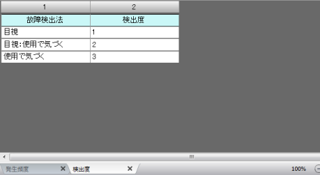FMEA表画面の入力の際に、表ダイアログを表示して入力を支援することができます。 補助定義表は、この表ダイアログを規定します。 補助定義表画面で作成した補助定義表を項目定義表で設定することで、FMEA表で使えるようになります。 機能一覧 補助定義表の表示と編集 補助定義表の表示、行の追加、削除、セルの編集を行うことができます。 行の挿入等の操作は、マウス右クリックで表示されるコンテキストメニューからコマンドを選択して行います。 画面スクロール 画面を縦、横にスクロールできます。 画面ズーム 画面をズームイン、ズームアウトできます。 テキスト検索 リボンのホームタブの検索機能で、テキストの検索ができます。 参照: FMEA表画面/補助定義表切り替えタブ/制限事項/[補助定義表画面]コマンド/コンテキストメニュー/項目定義表画面 キーワード: 補助定義表画面/補助定義表